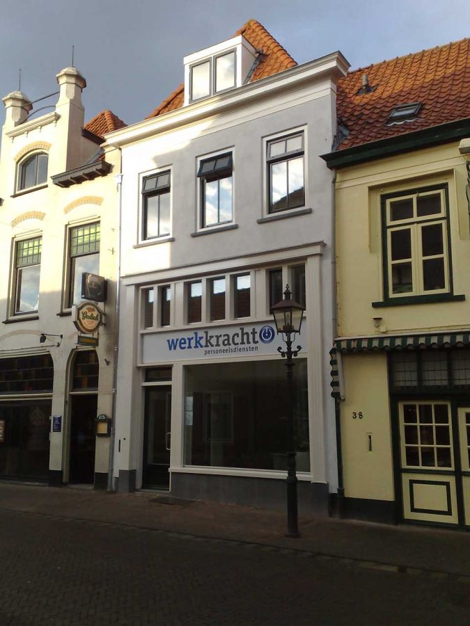 De gevel van dit pand in Harderwijk is volledig gerenoveerd. Er zijn meerdere ramen aangebracht en het stucwerk is opgeknapt. Een geweldige metamorfose.